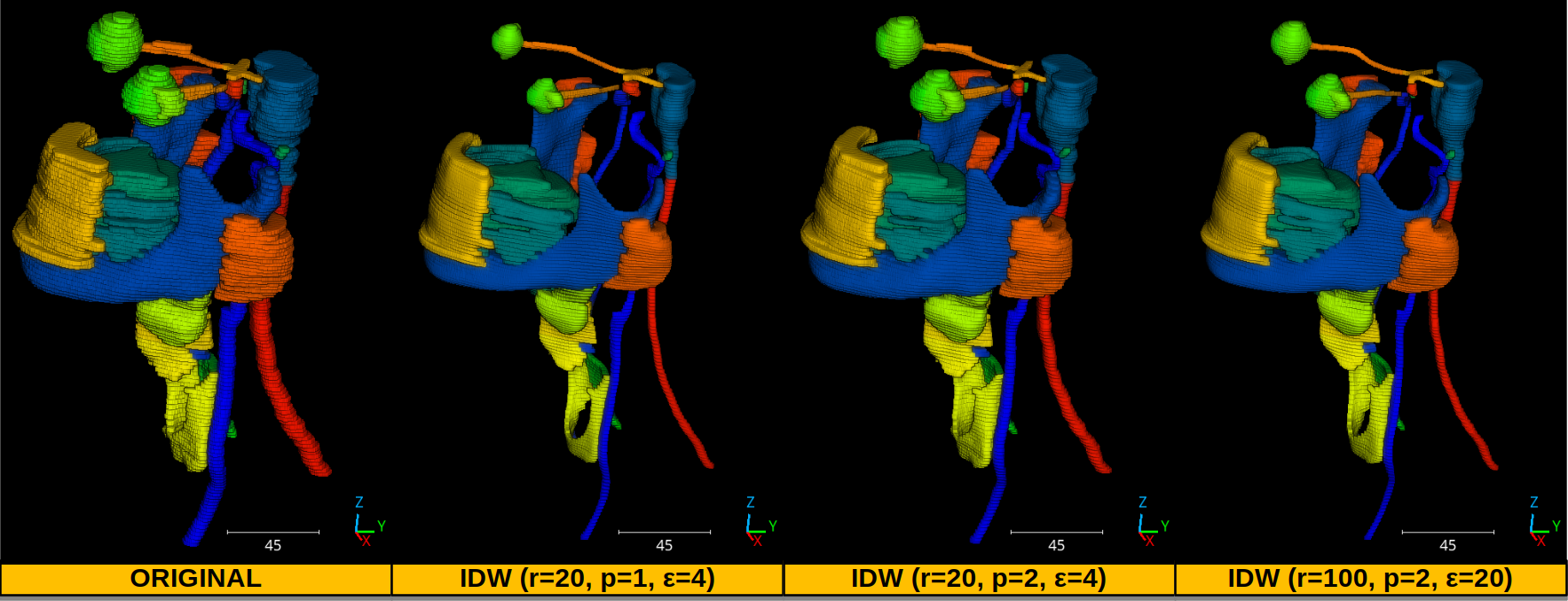 neighborhoods with \(20\;\mathrm{mm}\) radius using inverse distance